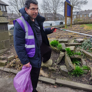 It's not unusual for our Guerrilla Gardening volunteers to be out and about in the local area collecting litter. During the past two weeks we have joined the Keep Britain Tidy Great British Spring Clean #bigbagchallenge and have had teams out and about in the local area in Little Horton tidying and collecting rubbish. Today our special guest was Scruff our therapy dog!